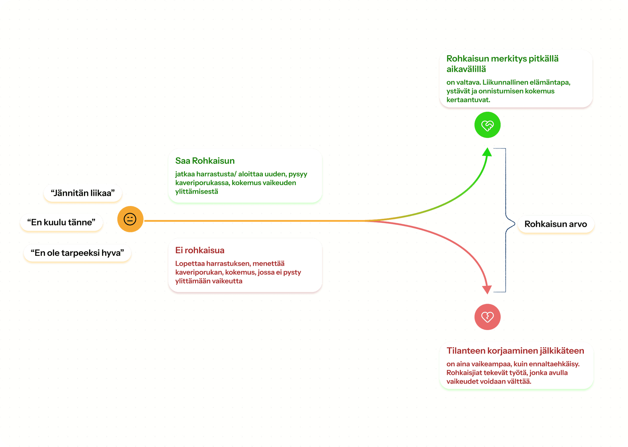 Lapsi harrastaa yhä, nyt ilman pelkoa. Kun ihmisen elämän suunnan voi kääntää edes vähän positiivisempaan suuntaan tarpeeksi ajoissa, sillä voi olla valtava vaikutus pitkällä aikavälillä. Siksi olemme päättäneet luoda Rohkaisijat -liikkeen, jossa mahdollisimman moni voisi saada tarvitsemansa tuen mahdollisimman aikaisessa vaiheessa.
